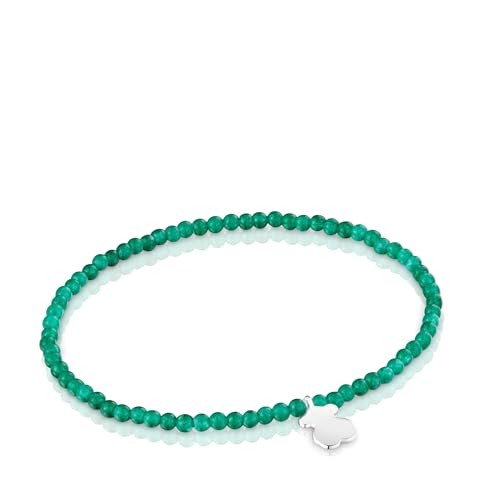 OFERTA: TOUS Pulsera Elástica para Mujer con Bolas Redondas Facetadas de Calcedónia En Color Verde y Motivo Oso de Plata de Primera Ley, 17cm de Largo, Colección Motivos | Oferta Amazon